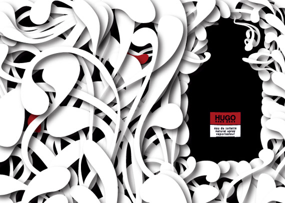 a limited colour palette. The Hugo 'red' was employed as an accent colour.
