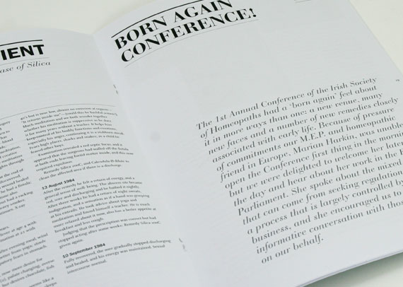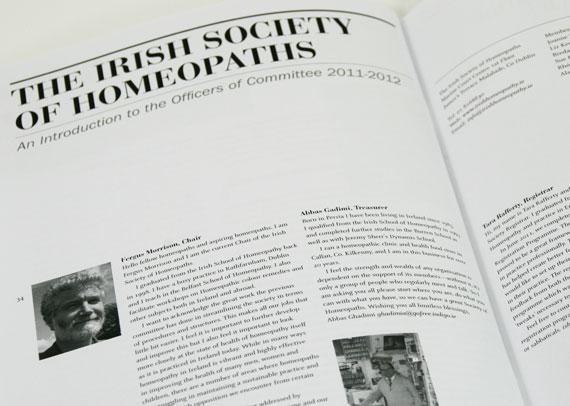 A redesign of a bi-annual publication whose readership primarily consists of practising homeopaths.